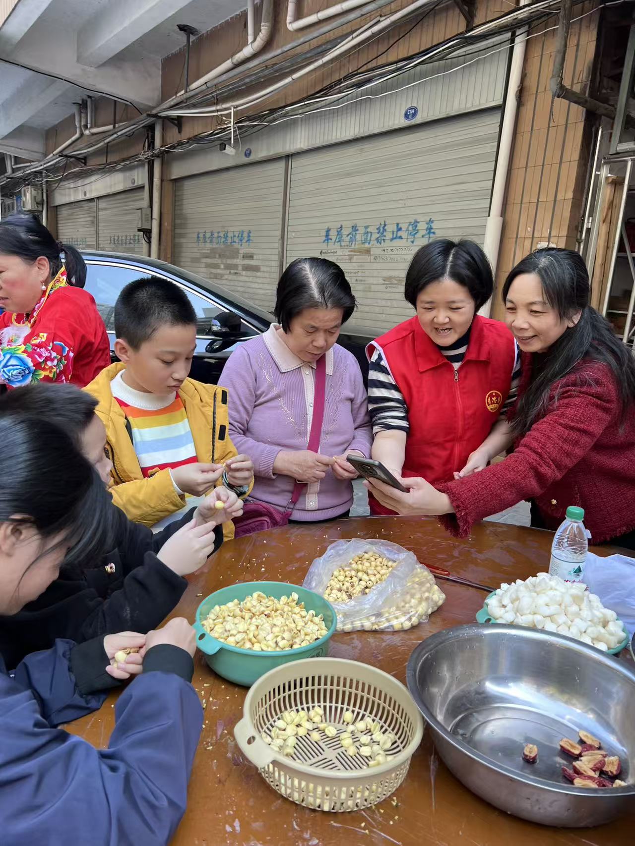 台上精彩纷呈,台下暖意绵长。志愿者与现场的老人和孩子一同将红枣去核、荸荠切块,共同完成食材准备工作,志愿者们细心熬煮,孩子们为在场的长者送上一碗碗热气腾腾的拗九粥,在弥漫的粥香中传递着浓浓敬老情。“今天的活动丰富多彩,现场氛围也非常温馨,让我们这些老人家感受到了节日关怀。”陈阿姨品尝着拗九粥,眉眼间满是笑意。在志愿者带领下,孩子们分组上门为高龄老人送粥,传递节日关怀。