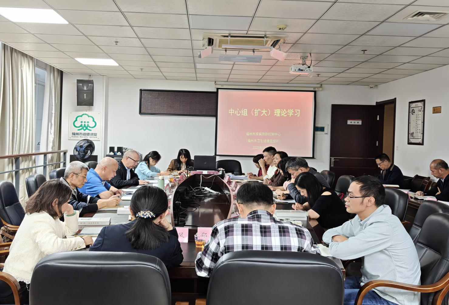 11月3日,福州市疾控中心党委召开中心组理论学习(扩大)会议,传达学习党的二十届四中全会精神,重点学习《中国共产党第二十届中央委员会第四次全体会议公报》全文,并集中学习《中共中央关于制定国民经济和社会发展第十五个五年规划的建议》,深刻领会全会精神与实践要求并展开深入研讨。中心党委书记、三级调研员林强主持会议,党政领导班子、党委委员及中层以上干部约44人参加。