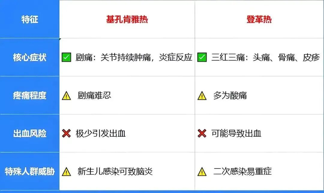 这两种疾病,早期的症状非常像,各年龄人群普遍易感,发病后都会出现高热、皮疹、头痛、关节和肌肉疼痛等症状,但侧重点有所不同。
