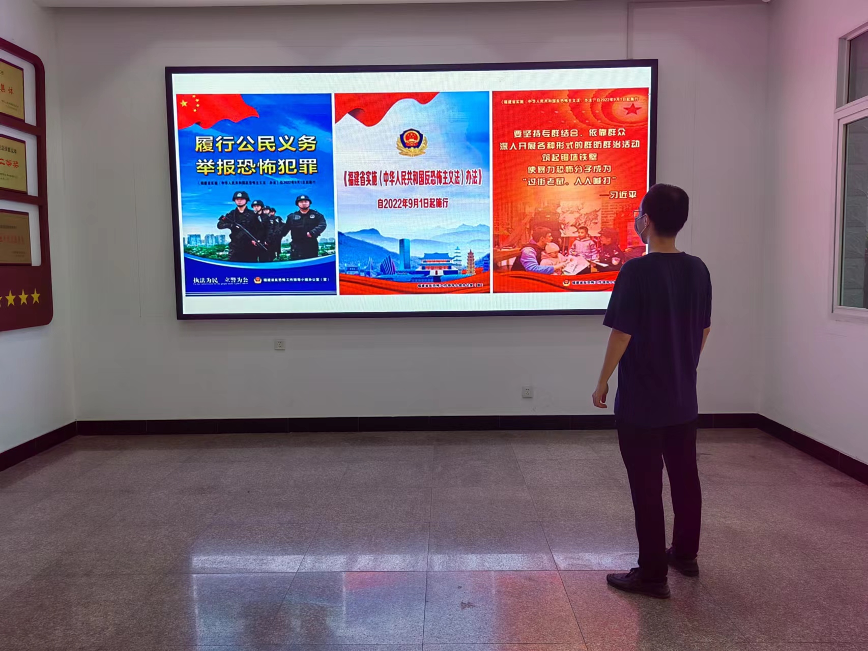 中心通过在业务楼门口LED屏播放反恐宣传标语、业务楼综合大厅、行政楼LED屏播放《福建省实施〈中华人民共和国反恐怖主义法〉办法》宣传图片、微信公众号和中心网站发布《全文来了!福建省实施〈中华人民共和国反恐怖主义法〉办法》等形式,广泛发动群众积极参与反恐怖工作,使广大群众“知恐、反恐、识恐、防恐”,全面提高全民识别、报告、应对、处置暴恐极端思想和行为的能力素质,确保社会的稳定和谐。