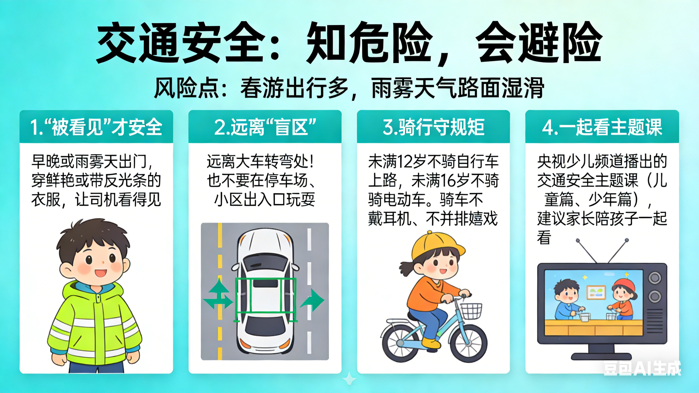最近天气转暖,大家都爱出门踏青、游玩。但春天也是各种安全风险“冒头”的时候——路上车多人多、野外风干物燥……