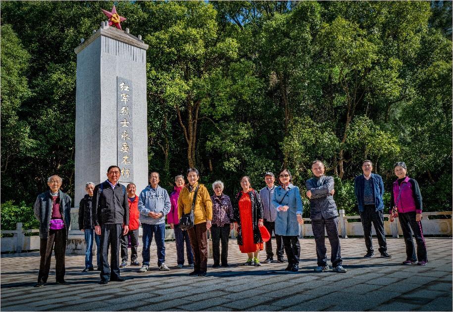 活动的第一站大家来到了连江黄岐厦宫红军纪念园。1934年8月,中国工农红军北上抗日先遣队在潘渡贵安汤岭、降虎一带与国民党87师展开激战,300多名伤病员被县苏区人民抢运到下宫,经过治疗,100多名伤病员痊愈后加入了闽东十三独立团,近200名红军战士在这场战斗中牺牲,并被安葬在这里。连江黄岐厦宫红军纪念园展示了中国工农红军的革命历史和英勇事迹,园内有红军长征途中留下的许多文物和历史遗迹,如红军洞、红军井、红军路等,这些景点让党员们更深入地了解红军长征的历史和艰苦卓绝的斗争环境。老同志们在纪念碑前回顾历史、缅怀先烈,增强了大家的爱国主义情感和民族自豪感。