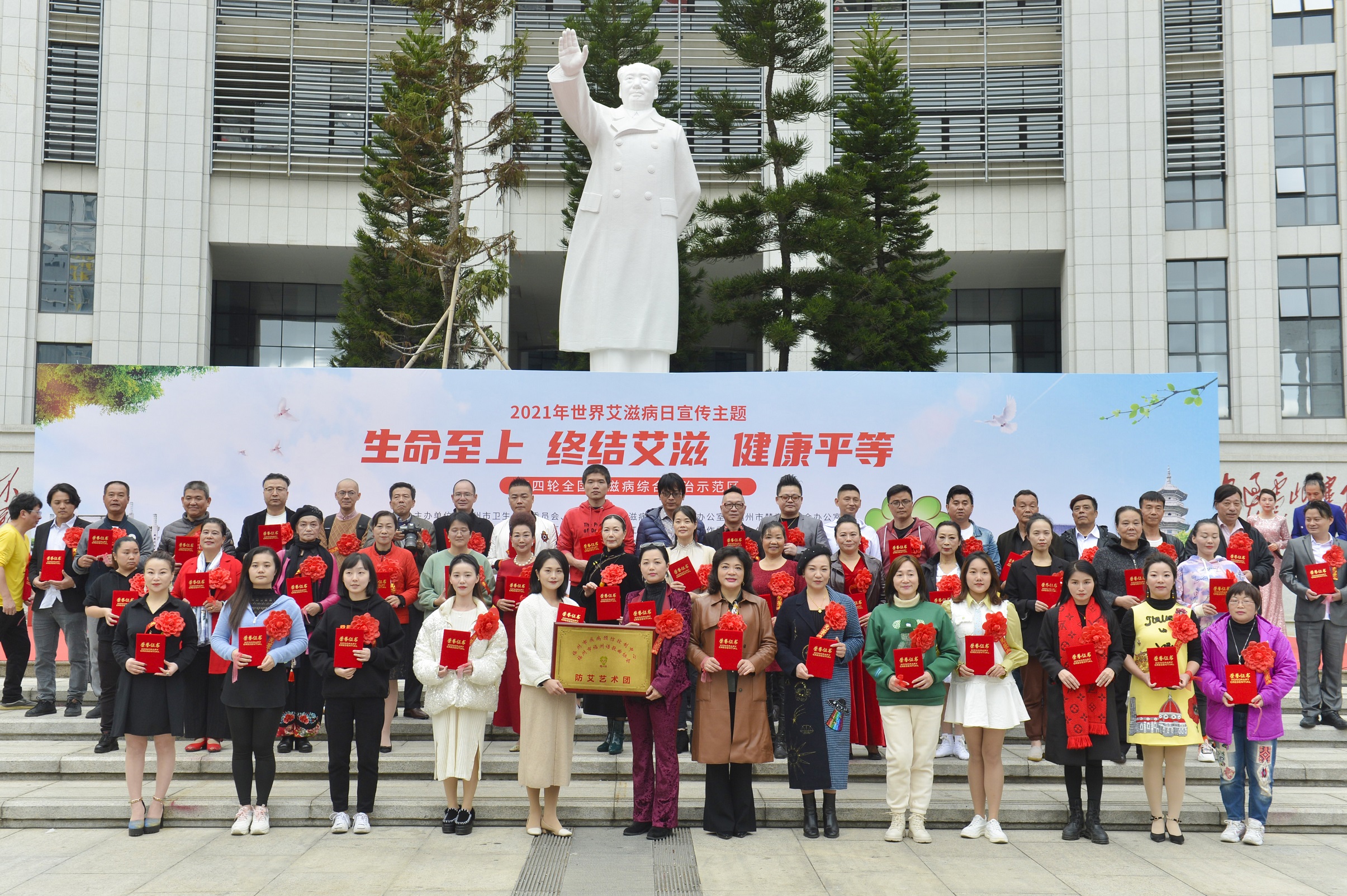 活动还穿插了福州市防艾艺术团授牌仪式、防艾知识有奖竞猜互动等环节。值得一提的是,“福小艾”微信表情包在本次活动中首次亮相。