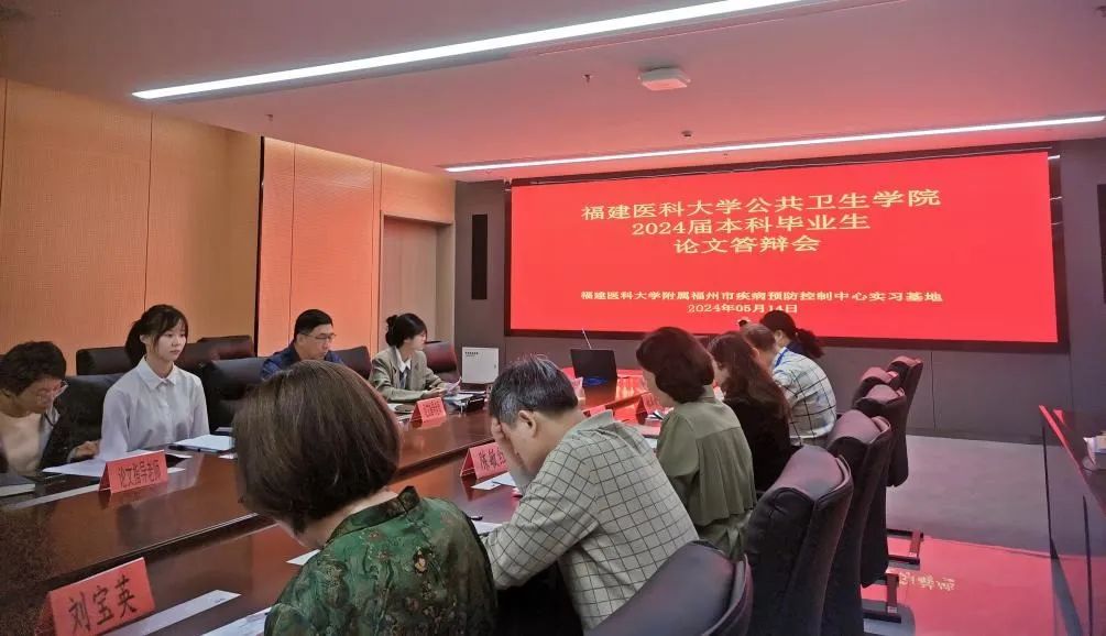 5月14日下午,福州疾控举办福建医科大学公共卫生学院2024届本科生毕业论文答辩会,来自福建医科大学预防医学专业、卫生检验与检疫专业的4名学生参加答辩会。福建医大公卫学院委派刘宝英教授到场指导,福州疾控成立了以中心主任张晓阳为组长、高级职称专业技术人员为成员的答辩组,中心教研室部分老师观摩本次答辩会。