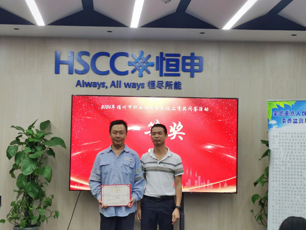 9月24日,福州市疾病预防控制中心趁热打铁,在福建省合盛气体有限公司开展职业健康素养调查的同时,举办职业健康素养线上有奖问答活动颁奖仪式。福州市疾病预防控制中心副主任谢兆勋、连江县疾病预防控制中心副书记邱振国出席了此次活动,并为获奖者颁奖。通过现场颁奖极大激发了劳动者的参与热情和学习积极性。
