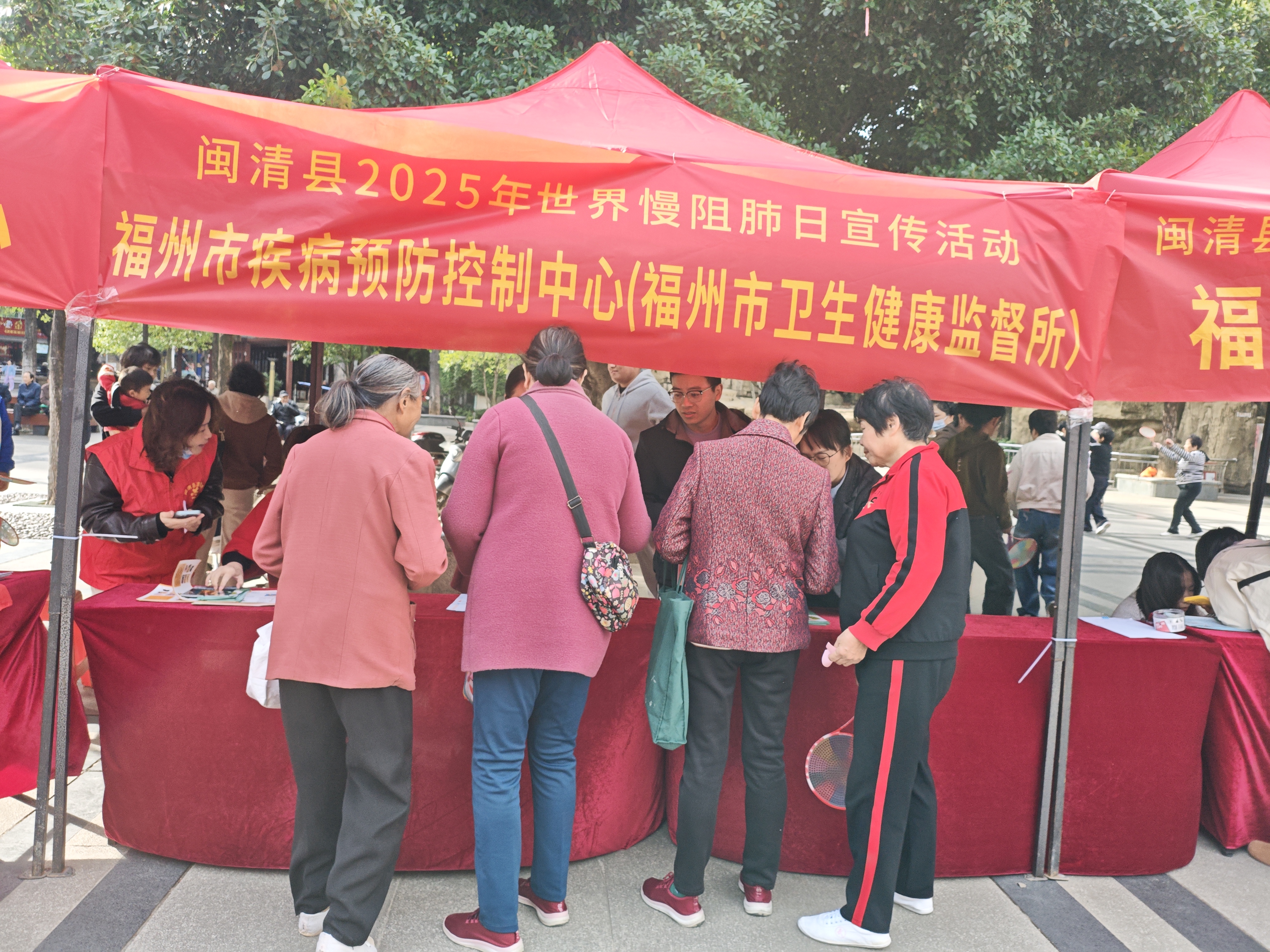 2025年11月19日是第24个世界慢阻肺日,为贯彻党中央关于实施健康中国战略的决策部署,落实《国务院关于实施健康中国行动的意见》《健康中国行动(2019—2030年)》《健康中国行动—慢性呼吸系统疾病防治行动实施方案(2024—2030年)》等文件要求,持续推进慢性呼吸系统疾病防治工作,中心于11月19日在闽清县乃裳广场举办现场宣传活动。本次活动由福州市卫生健康委员会、闽清县卫生健康局主办,福州市疾病预防控制中心(福州市卫生健康监督所)、福州市预防医学会、闽清县疾病预防控制中心(闽清县卫生健康监督所)、闽清县总医院等单位承办。