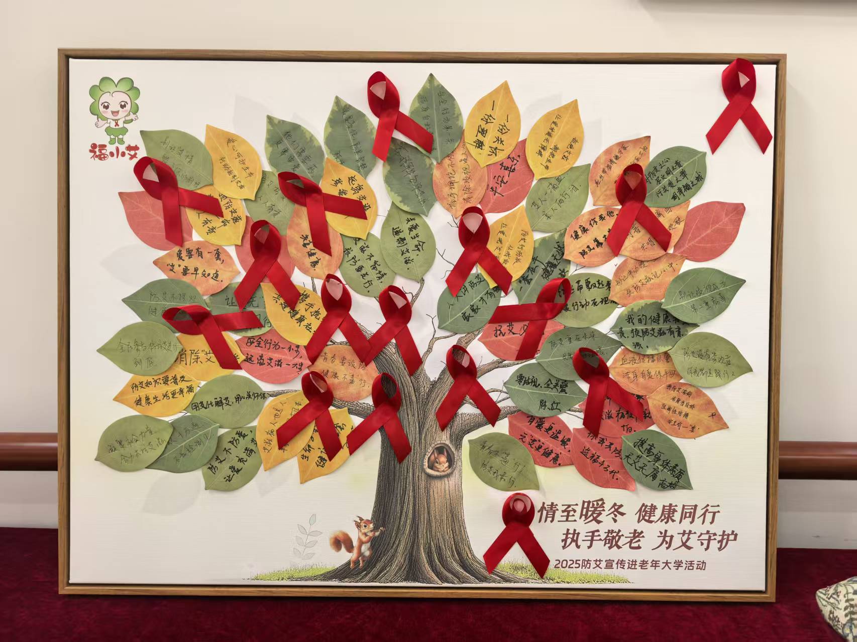 活动入口处的签到处也成为了老人们表达支持与关爱的平台。许多老年学员郑重写下“青春不‘毒’行,防艾我最行”“零歧视,全关爱”等暖心寄语。他们纷纷表示,此次活动内容丰富、贴近需求,非常有意义,回家后要将学到的知识分享给家人子女。