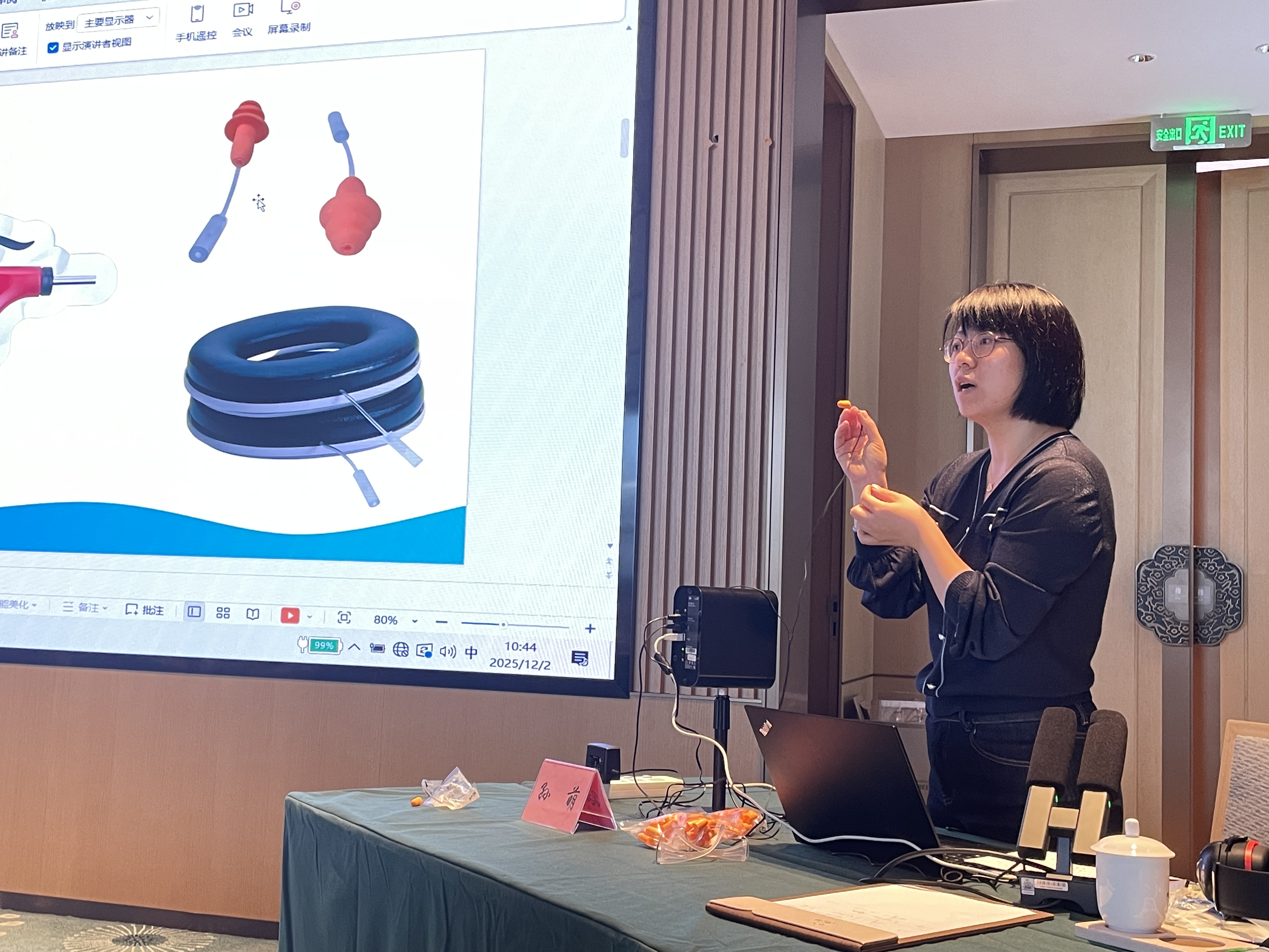 培训紧扣企业职业健康管理中的实际难点与薄弱环节,课程内容系统全面,兼具理论高度与实践指导性。师资方面特邀国家卫生健康委职业安全卫生研究中心朱晓俊研究员、张鹏高级工程师、孙萌工程师,围绕听力保护计划的构建与实施、劳动防护用品的科学选用与管理、常见防护用品的适合性检验等内容进行深入讲解,并现场演示耳塞、口罩等防护用品的适合性检验操作,激发了学员的浓厚学习兴趣。中国疾病预防控制中心职业卫生与中毒控制所王忠旭主任医师、贾宁研究员则针对企业普遍关注的工作相关肌肉骨骼疾病开展防控策略及职业接触评估方法的授课。福州大学赵永翔教授深入浅出地讲授了职业人员心理健康管理知识,并现场展示了其专利发明——心理情绪检测仪,为学员提供了生动的体验环节。此外,培训还专门设置了“职业卫生监督执法应对与法律风险防控”课程,切实回应企业管理中的现实困惑,助力企业提升依法合规管理水平。本次培训创新采用“现场授课+实操演练+多元宣传”相结合的形式,除了理论讲解与实践操作,还为学员准备了丰富的职业健康知识宣传材料和个体防护用品,并设置了生动有趣的有奖问答环节,增强了培训的互动性与参与感。