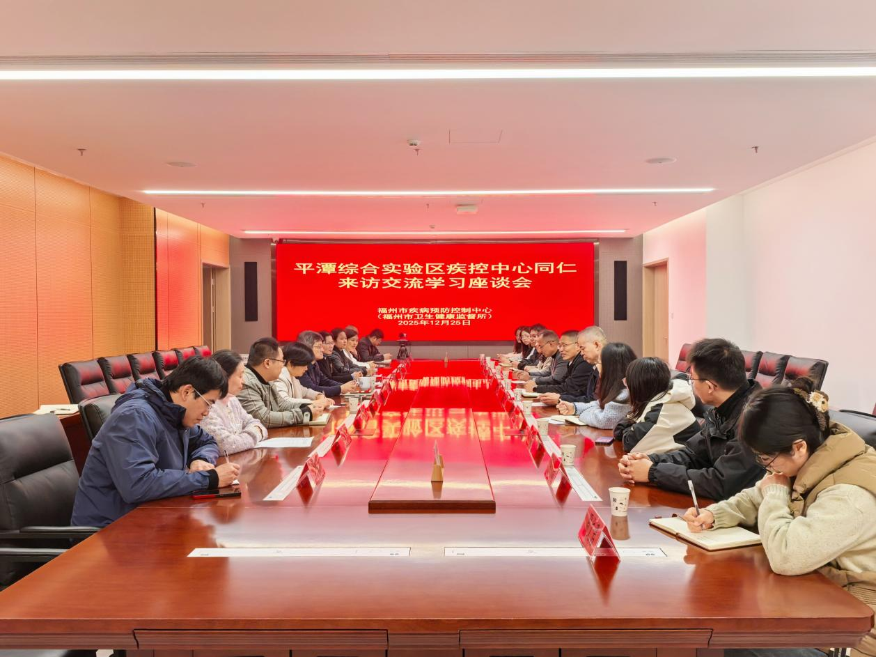 12月25日,平潭综合实验区疾病预防控制中心主任、党支部书记林朱率队一行11人,到访福州市疾病预防控制中心(福州市卫生健康监督所)开展工作交流,中心党委副书记、主任张晓阳、副主任陈敏红及相关科室负责人陪同交流。
